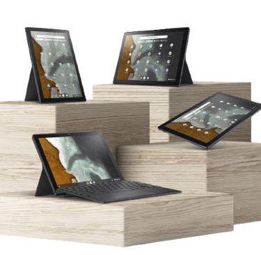 Dispositivos convertibles 360° que funcionan como laptop, tableta, tienda de campaña o presentador.